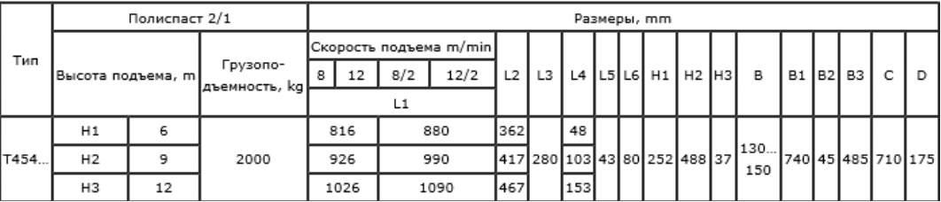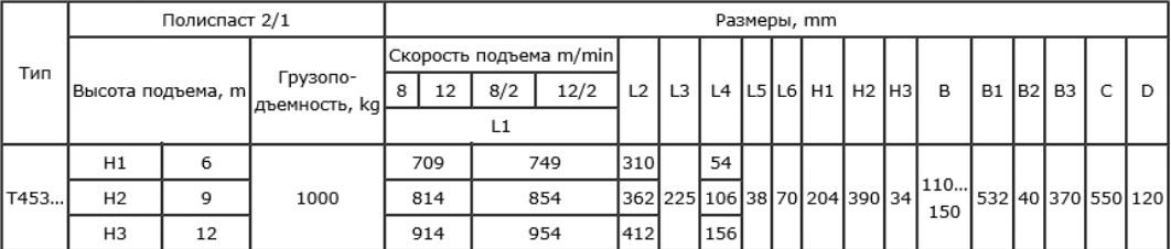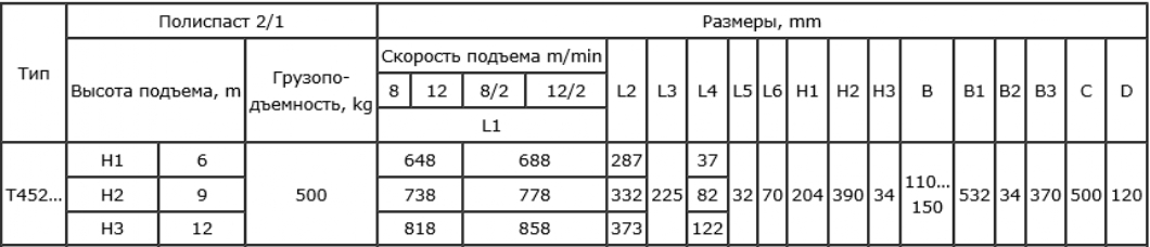 Электрический тельфер типа 13T 45236Грузоподъемность 0.5 т, группа FEM 9.511- 2m,